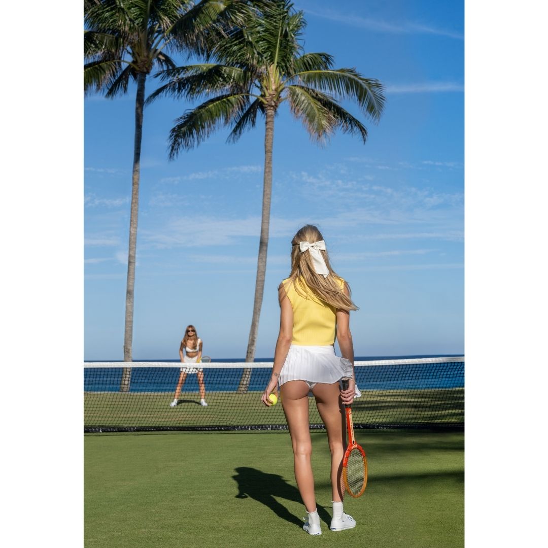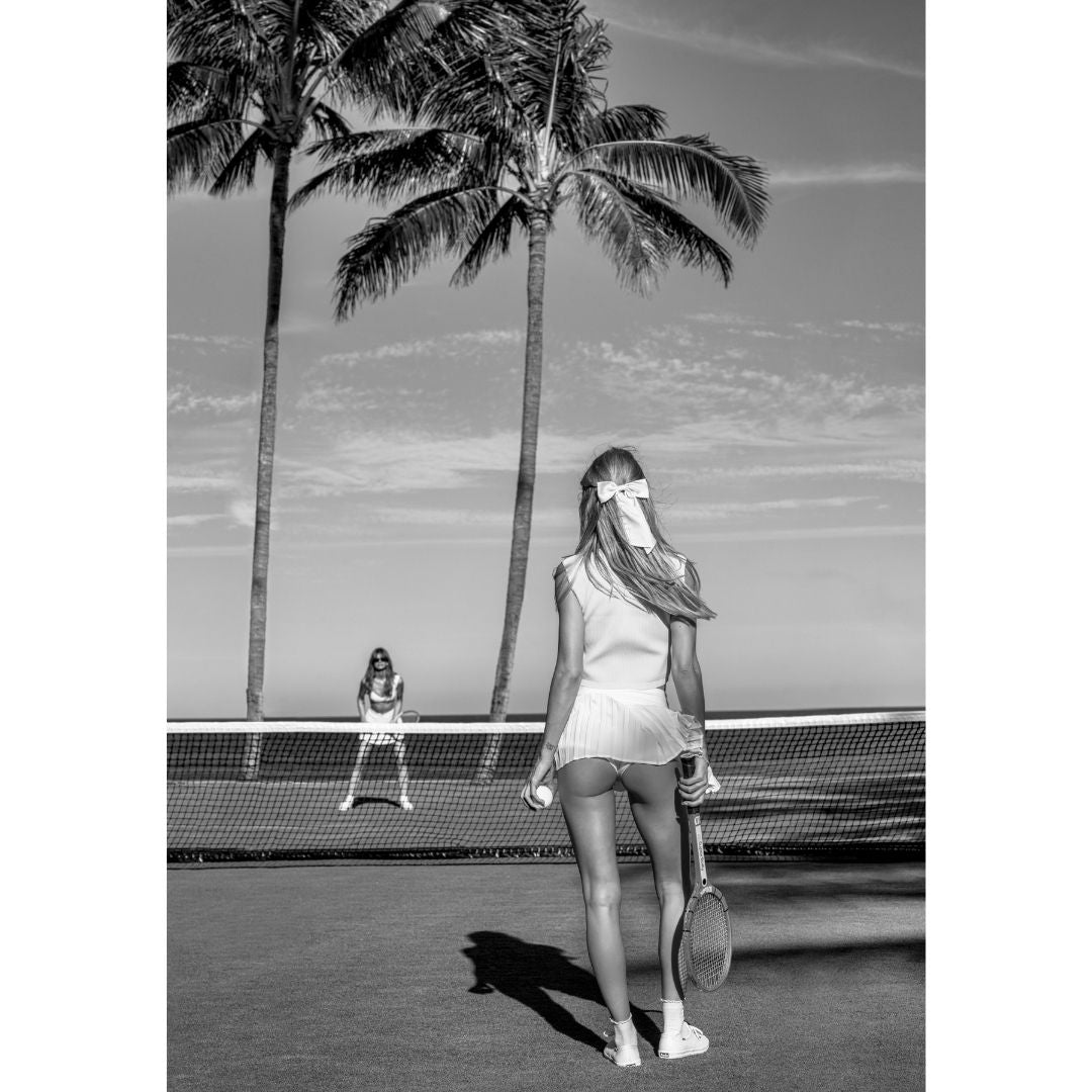 I saw an opportunity to borrow from that famous old tennis picture and then impose a Palm Beach narrative. The 1970s styling was quite straightforward, but the concept required some wind to lift the tennis player’s skirt in the manner I was hoping for. In time we had our chance and everything else just fell into place.